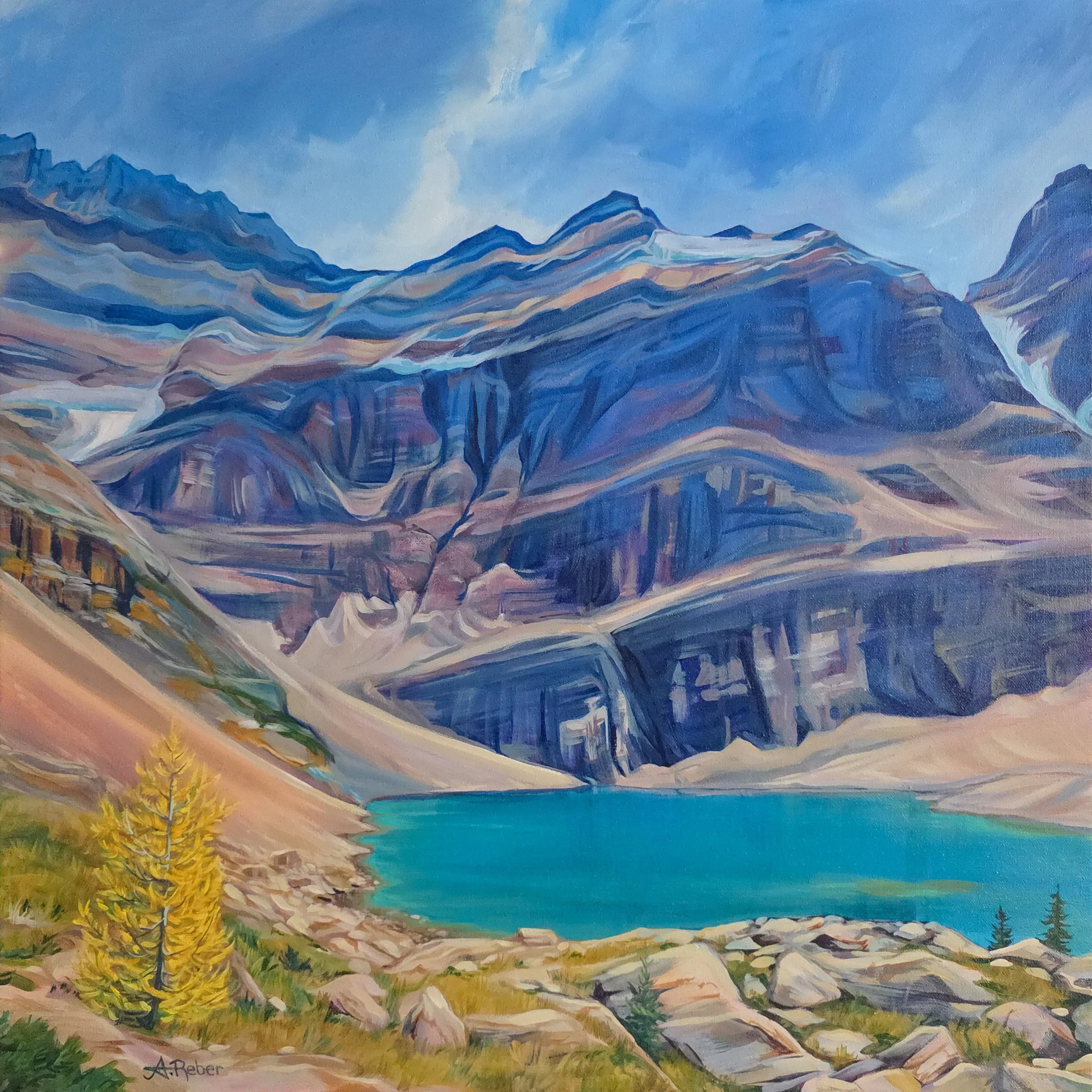 24 x 24 inch Original painting depicting Oesa Lake just above Lake O’hara.